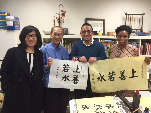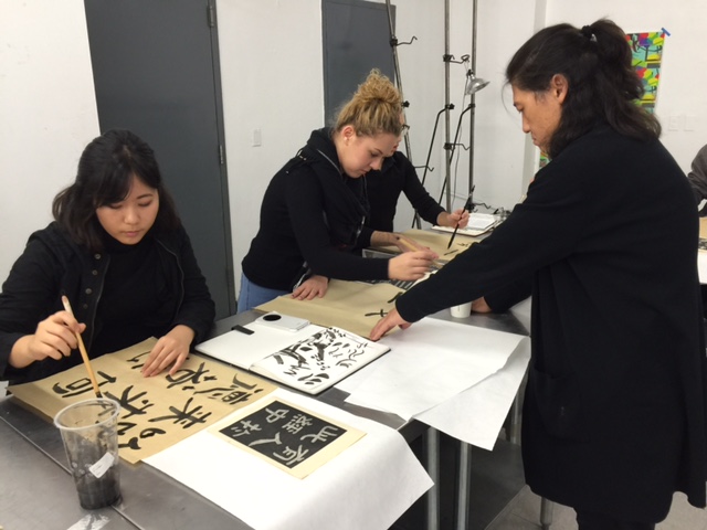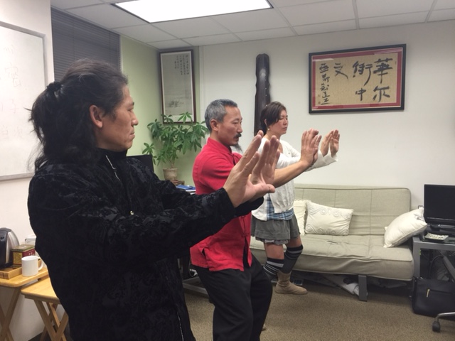 Pictures: calligraphy workshops at Wall Street Chinese Teacher Zhiyuan Guan and Parsons Artist Lianjie Zheng, Tai Chi class with Rengang Wang.